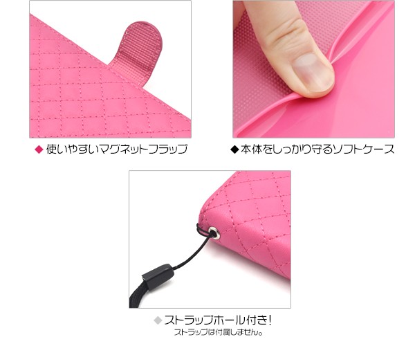 <スマホケース>Android One S4/DIGNO J用キルティングレザーケースポーチ