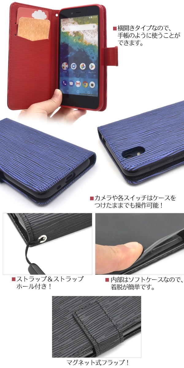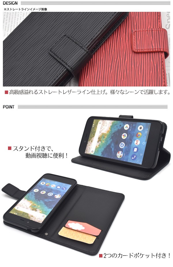 <スマホケース>Android One S3用ストレートレザーデザインスタンドケースポーチ