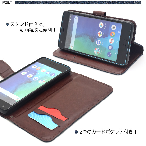 <スマホケース>Android One X3用デニムデザイン手帳型ケース