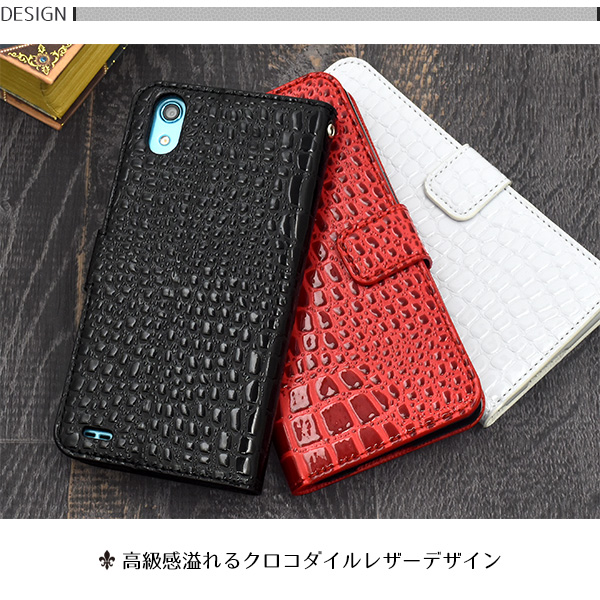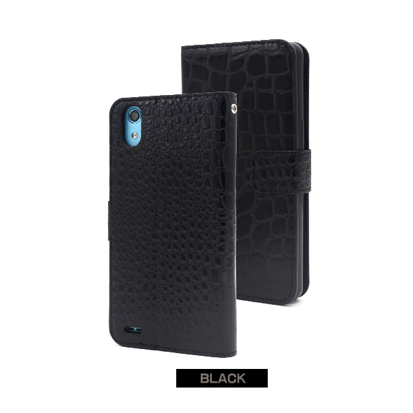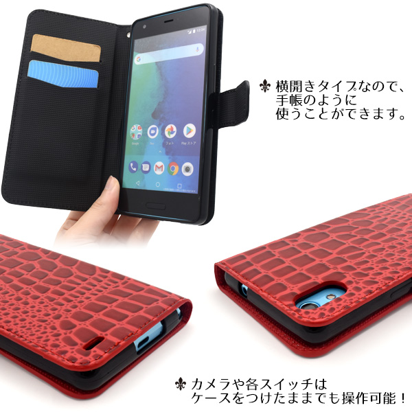 <スマホケース>Android One X3用クロコダイルレザーデザイン手帳型ケース