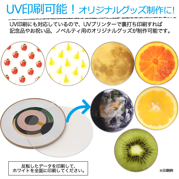 【スマホ用素材アイテム】UV印刷可能!オリジナルグッズ制作に! サークル型Qiワイヤレス充電器