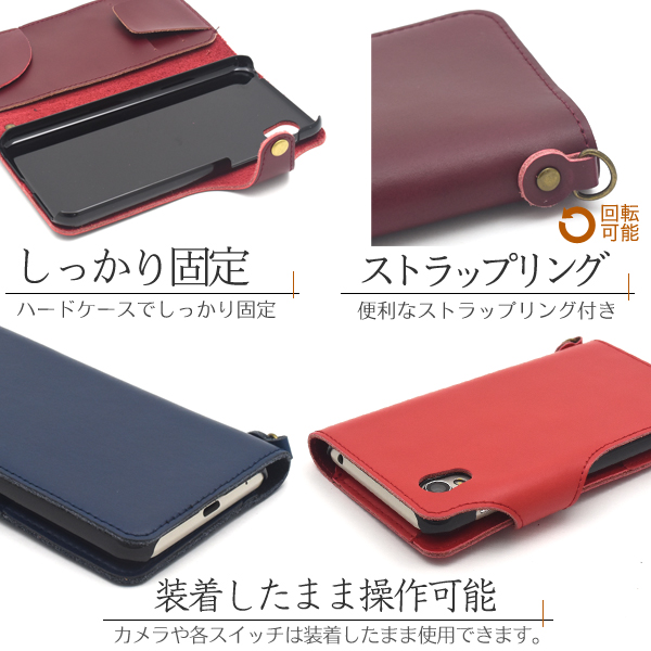 カード落下防止フラップ(実用新案登録済)付きの本革手帳型ケース!