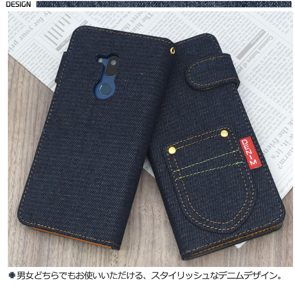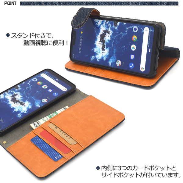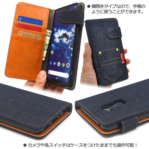 <スマホケース>Android One X5用ポケットデニムデザイン手帳型ケース