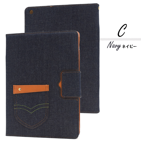iPad 10.2インチ(第7世代 2019年モデル)用デニムデザインスタンドケースポーチ(ジーンズデザイン)