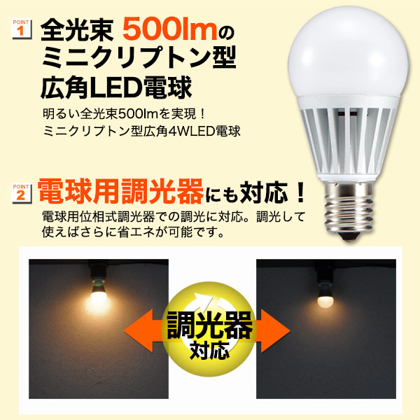 <LED電球・蛍光灯>調光器対応。 調光対応ミニクリプトン形小型LED電球/密閉器具対応 口金E17 4W