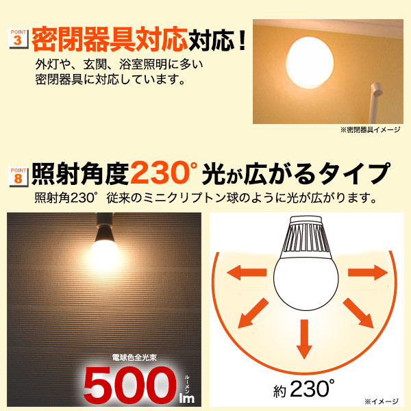 ■全光束500lm!ミニクリプトン型広角LED電球!