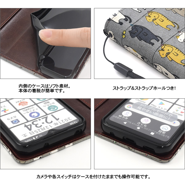 <スマホケース>arrows We F-51B/FCG01/A101FC/UQ mobile用干されてる猫手帳型ケース