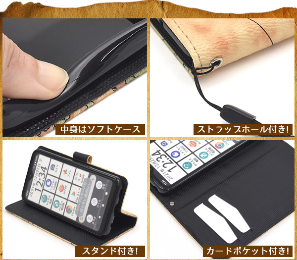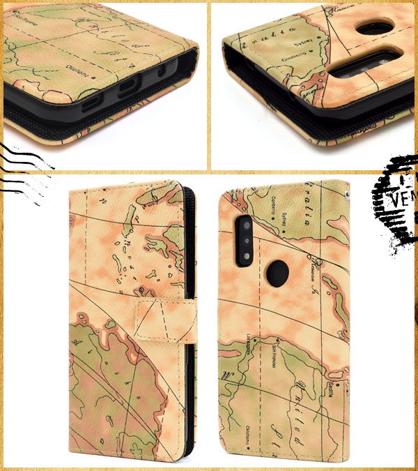 <スマホケース>arrows We F-51B/FCG01/A101FC/UQ mobile用ワールドマップデザイン手帳型ケース