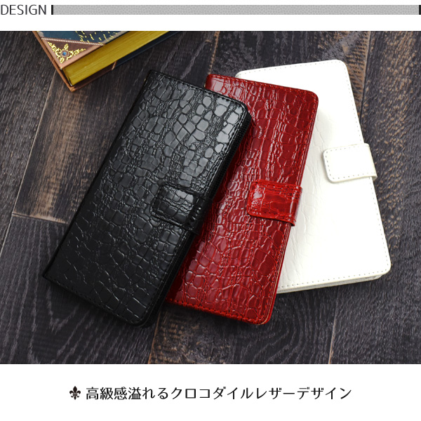 高級感溢れるクロコダイルレザーデザインの手帳型ケース。
