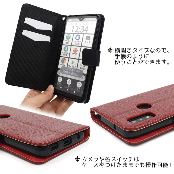 <スマホケース>arrows We F-51B/FCG01/A101FC/UQ mobile用クロコダイルレザーデザイン手帳型ケース