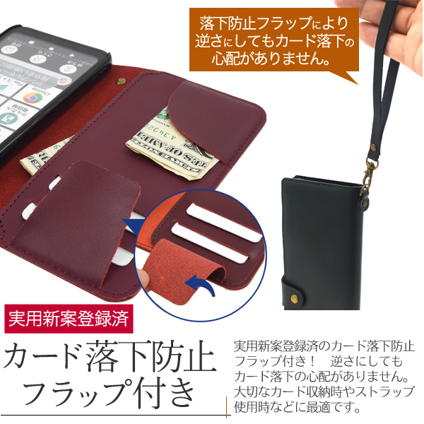 上質で滑らかな牛革を使用!カード落下防止フラップ(実用新案登録済)付き!