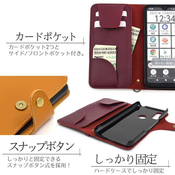 【ストラップ付き】上質な牛革を使用! arrows We F-51B/FCG01/A101FC/UQ mobile用牛革手帳型ケース
