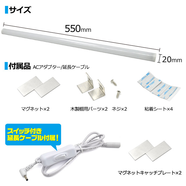 | サイズ | サイズ(約) 長さ550×縦15×横15×発光面20mm 重量(約) 88g |