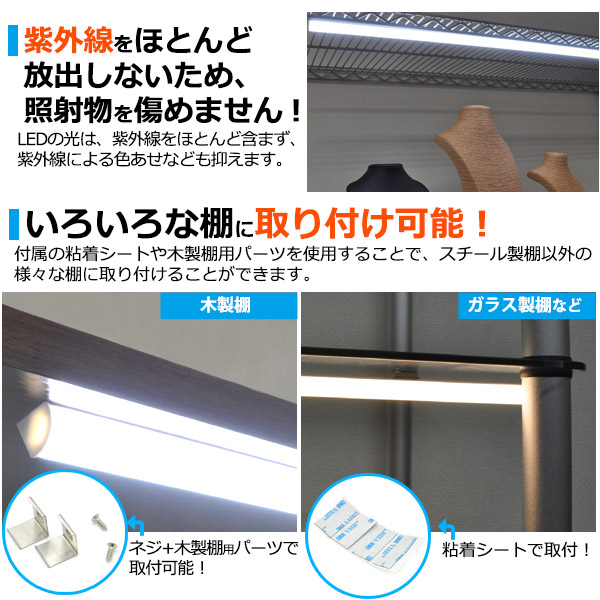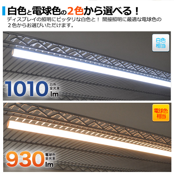 ディスプレイの照明にピッタリな白色と、間接照明に最適な電球色の2色からお選びいただけます。