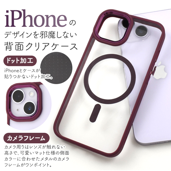 MagSafe対応で、内側にマグネットを内蔵することでケースを付けたままでも、ピタッと貼りつき、ワイヤレス充電など各種アクセサリーの使用が可能です。
