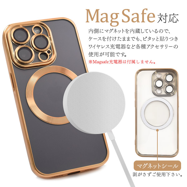MagSafe対応で、内側にマグネットを内蔵することでケースを付けたままでも、ピタッと貼りつき、ワイヤレス充電など各種アクセサリーの使用が可能です。
