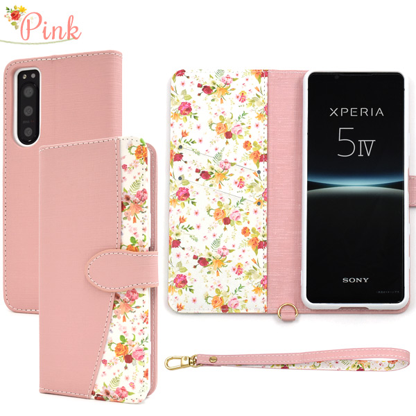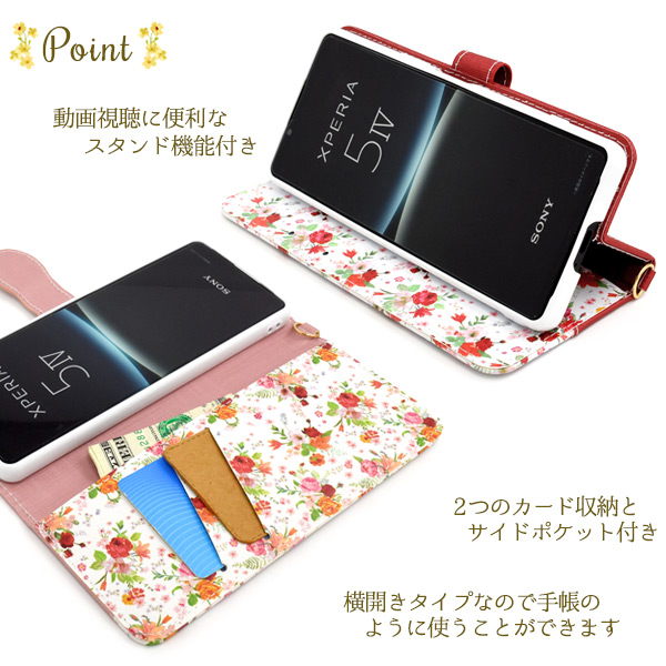 <スマホケース>Xperia 5 IV SO-54C/SOG09/A204SO用ハッピーブーケ手帳型ケース