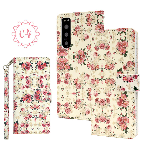 <スマホケース>Xperia 5 IV SO-54C/SOG09/A204SO用花模様手帳型ケース