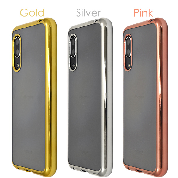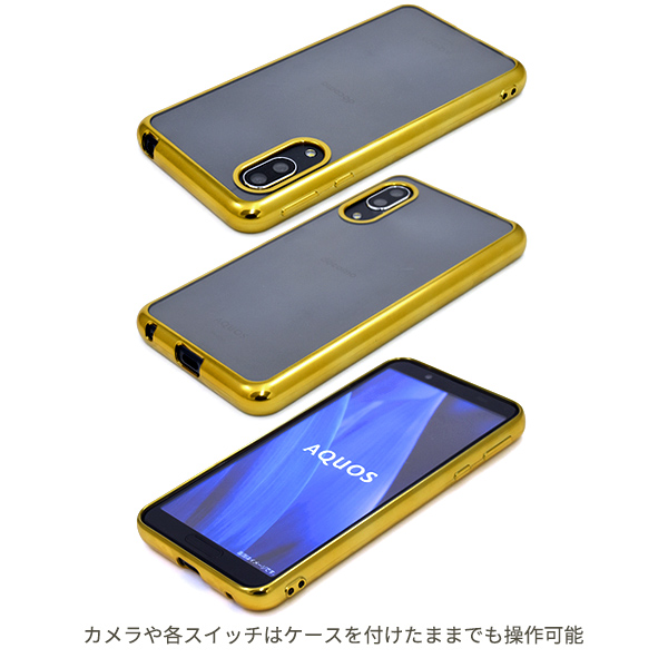 AQUOS sense3 /sense3 lite SH-RM12/sense3 basic/Android One S7用メタリックバンパーソフトクリアケース
