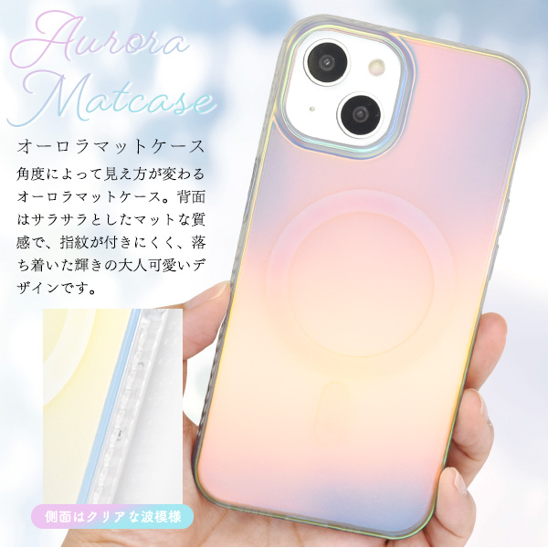 <スマホケース>幻想的に輝く♪ iPhone 14用MagSafe対応 オーロラマットケース