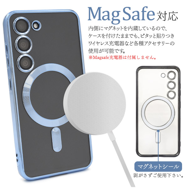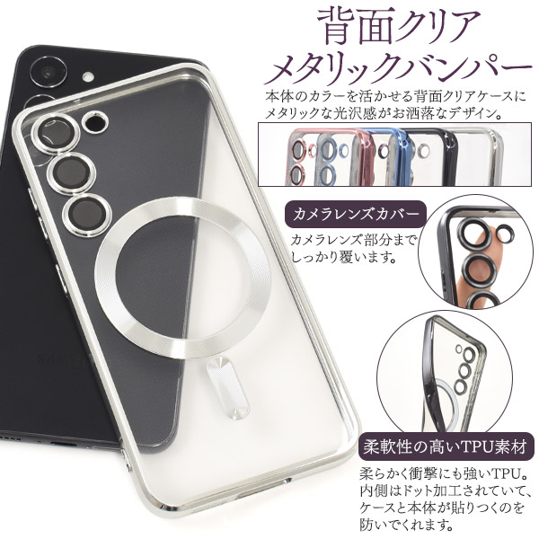 <スマホケース>Galaxy S23 SC-51D/SCG19用MagSafe対応メタルバンパークリアソフトケース