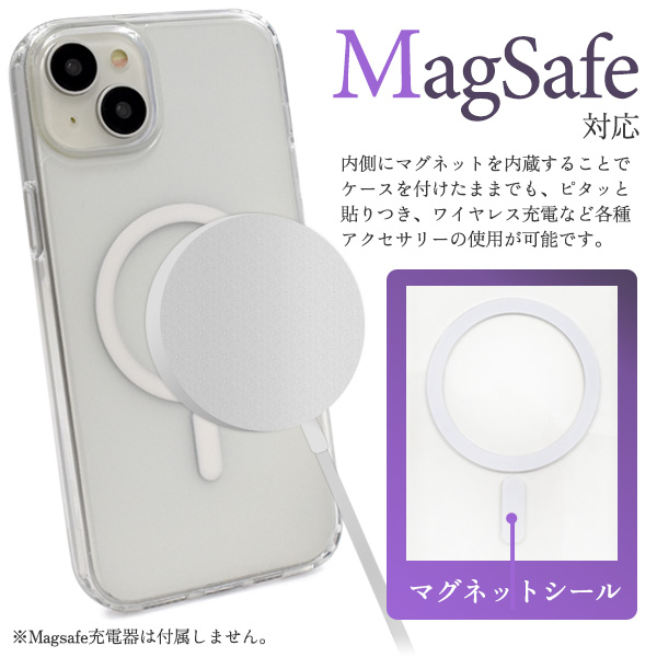 MagSafe対応で、内側にマグネットを内蔵することでケースを付けたままでも、ピタッと貼りつき、ワイヤレス充電など各種アクセサリーの使用が可能です。