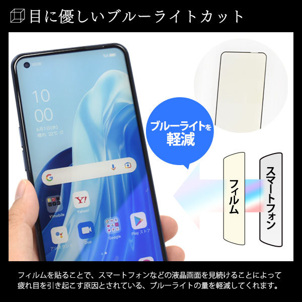 ブルーライトを軽減! OPPO Reno9 A用液晶保護ブルーライトカットガラスフィルム