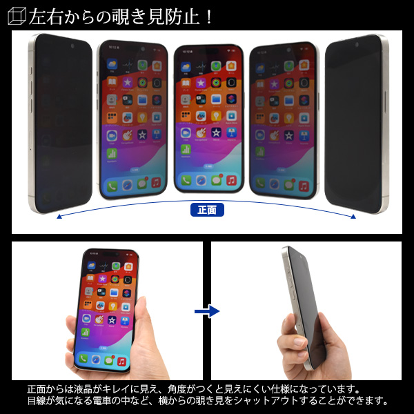 横からの覗き見を防止! iPhone 15 Pro用覗き見防止液晶保護ガラスフィルム