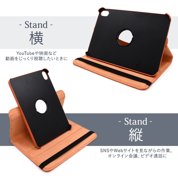 縦置きも横置きも可能!回転式スタンド付きカラーレザーケース