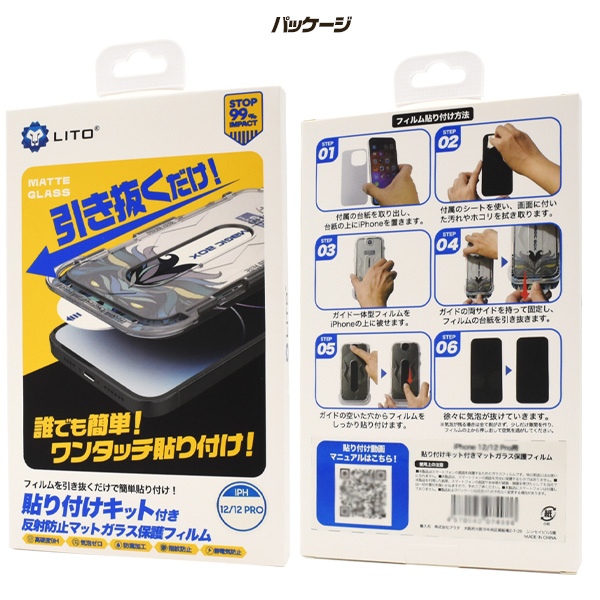 誰でも簡単!ワンタッチ貼り付け! iPhone 12/12 Pro用 貼り付けキット付き反射防止マットガラスフィルム