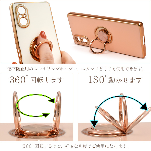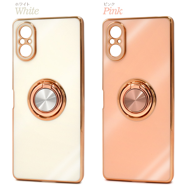 <スマホケース>Xperia 5 V SO-53D/SOG12/XQ-DE44用スマホリング付メタリックバンパーソフトカラーケース