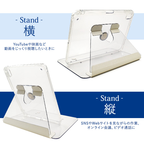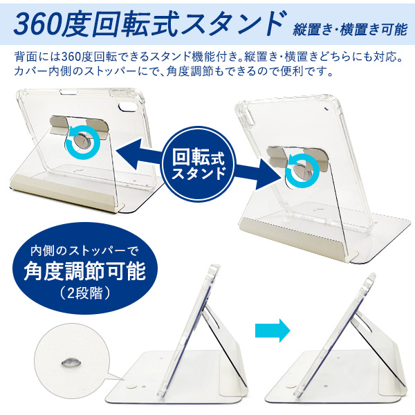 iPad 第10世代 (2022年)用回転式スタンド付き手帳型クリアケース