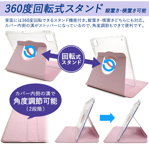 iPad Pro 11インチ(第2/第3/第4世代)/iPad Air(第4/第5世代)用回転スタンド付きカラーレザーケース