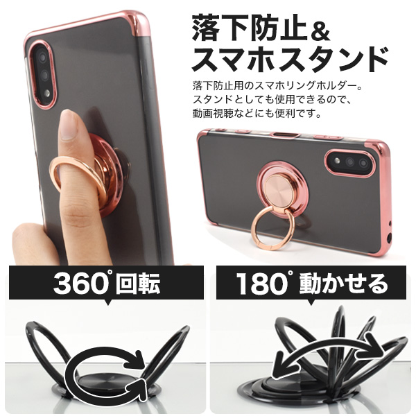 Xperia Ace II SO-41B用スマホリング付きメタルカラーバンパーソフトクリアケース