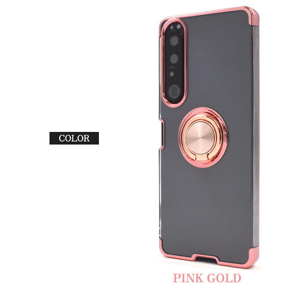 Xperia 1 IV SO-51C/SOG06/A201SO/XQ-CT44用スマホリング付きメタルカラーバンパーソフトクリアケース