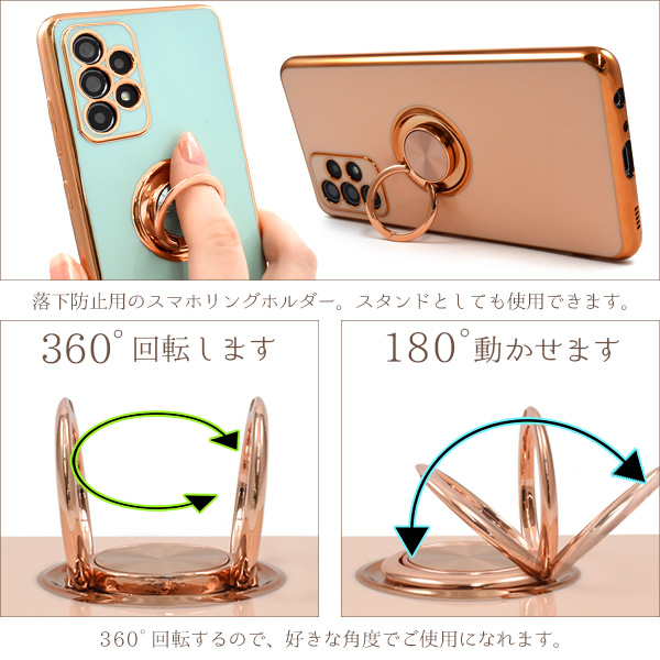 <スマホケース>Galaxy A52 5G SC-53B用スマホリング付メタリックバンパーソフトカラーケース