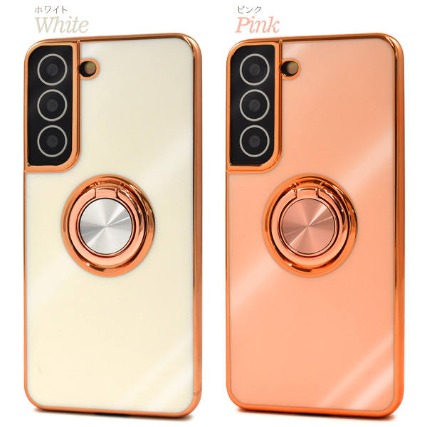 <スマホケース>Galaxy S22 SC-51C/SCG13用スマホリング付メタリックバンパーソフトカラーケース