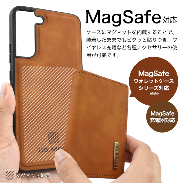 落ち着きあるカラーのPUレザーケース MagSafe対応 Galaxy S22+用PUレザー背面ケース