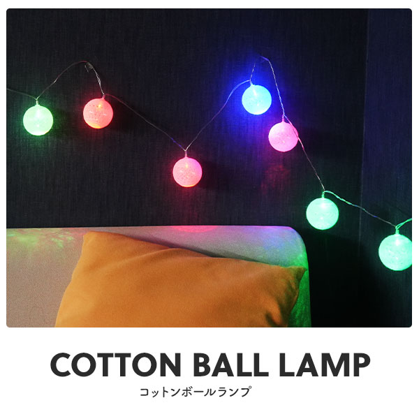 ころころとした見た目♪ USB電源式 コットンボール ランプ ホワイト/カラフル