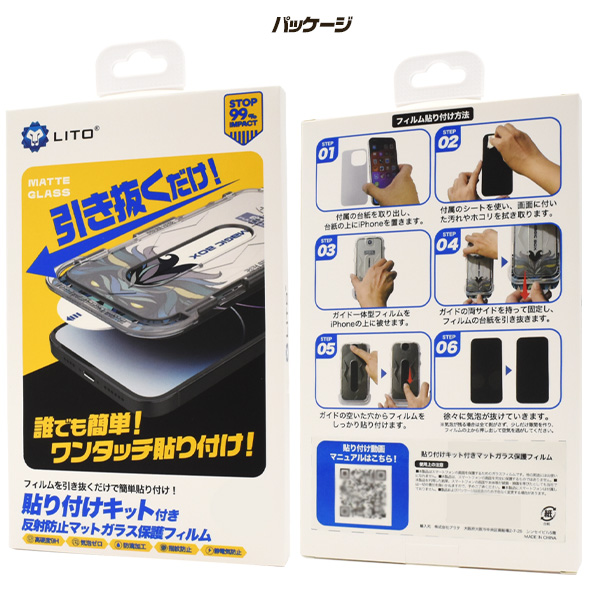ワンタッチ貼付!iPhone 16/16 Pro/16 Plus/16 Pro Max用ガイド枠付き一体型マットガラス保護フィルム