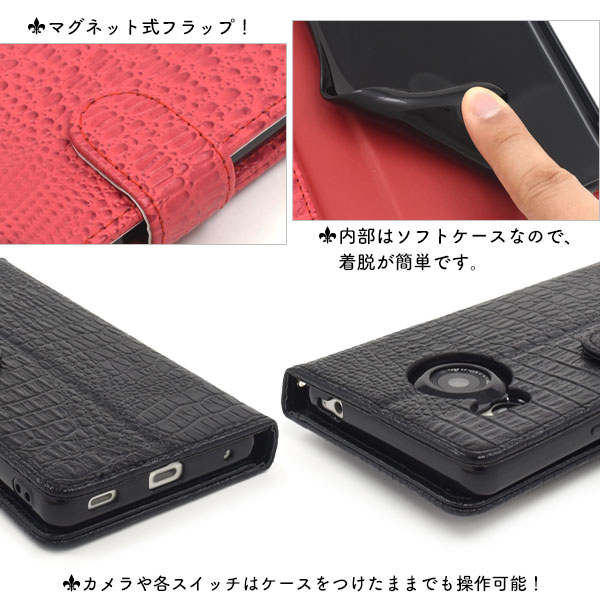 AQUOS R8 SH-52D/SH-R80用クロコダイルレザーデザイン手帳型ケース