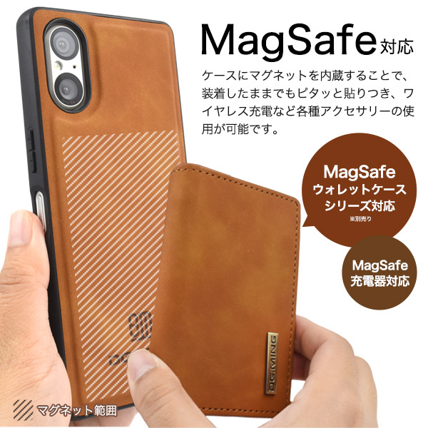落ち着きあるPUレザーケース MagSafe対応 Xperia 5 V SO-53D/SOG12/XQ-DE44用PUレザー背面ケース