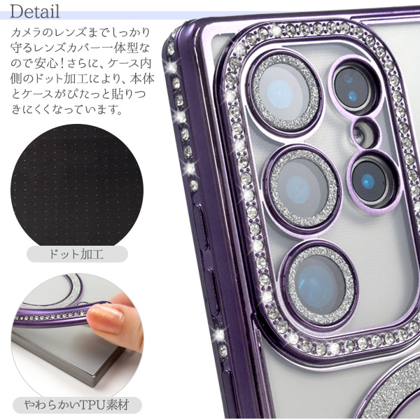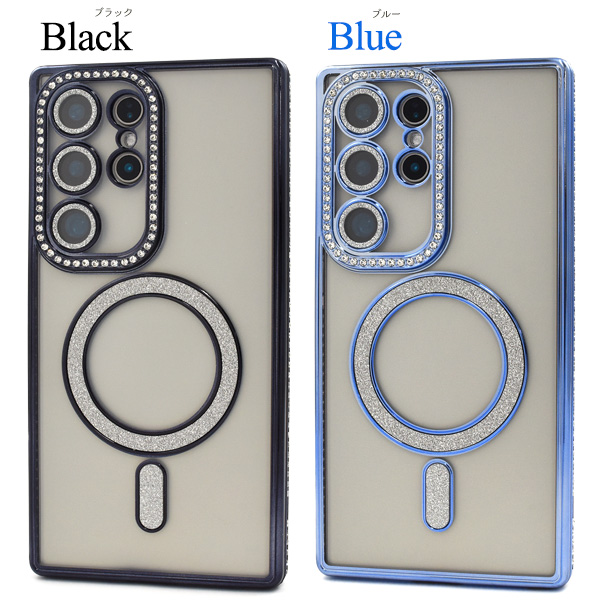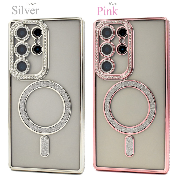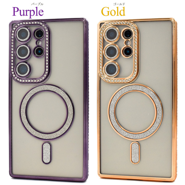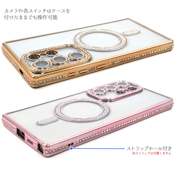 <スマホケース>Galaxy S24 Ultra SC-52E/SCG26用MagSafe対応メタリックカラーラインストーンケース