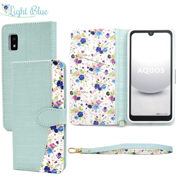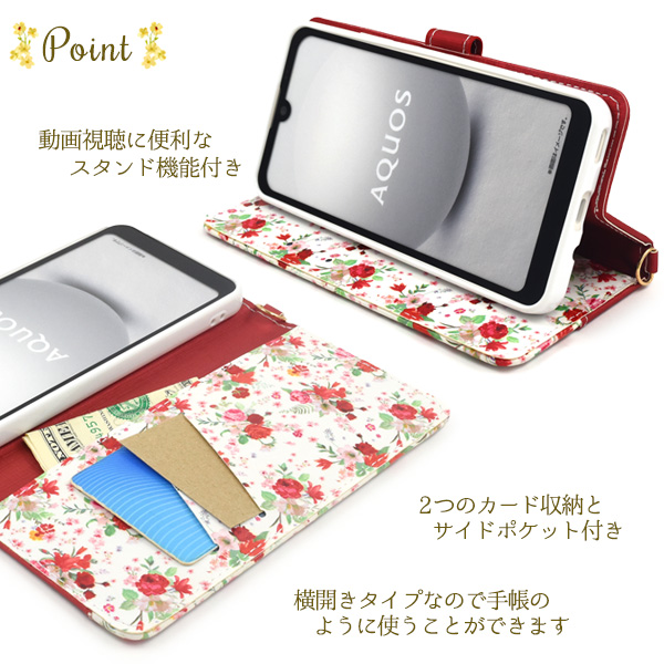 <スマホケース>AQUOS wish3 SH-53D/A302SH/A303SH/SH-M25用ハッピーブーケ手帳型ケース