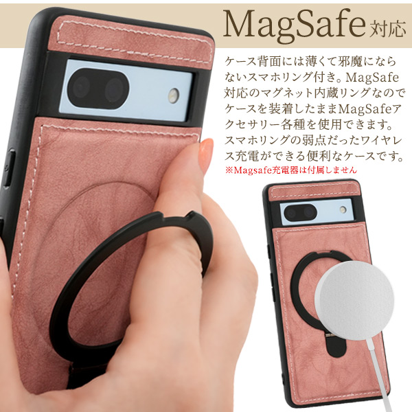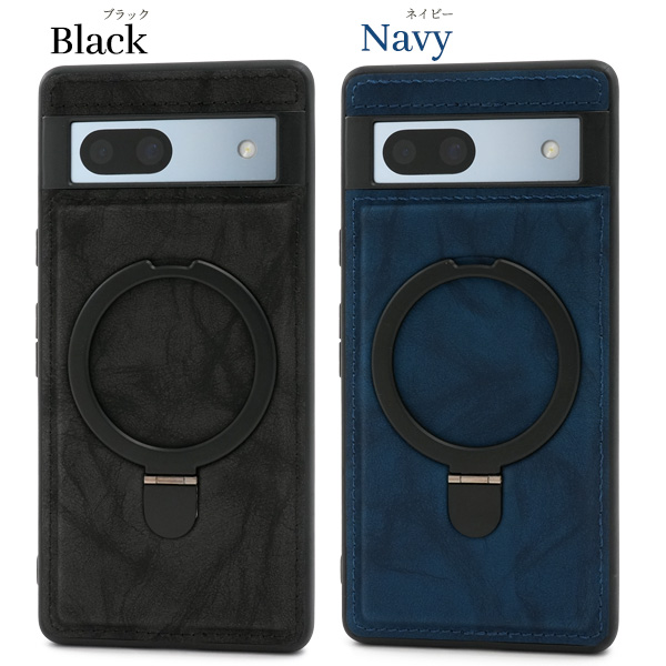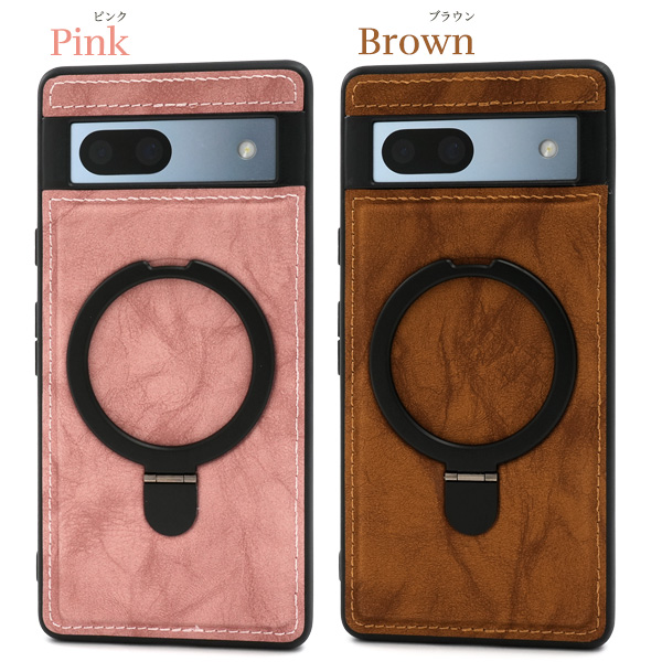 <スマホケース>Google Pixel 7a用MagSafe対応リング付きPUレザー背面ケース