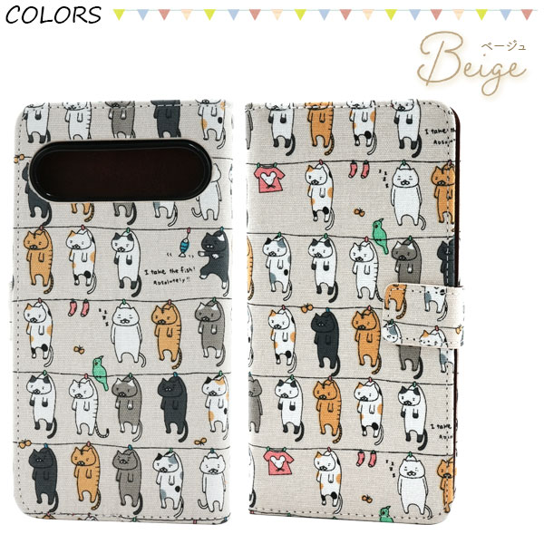 <スマホケース>Google Pixel 9 Pro XL用\にゃー!/ 干されてる猫手帳型ケース