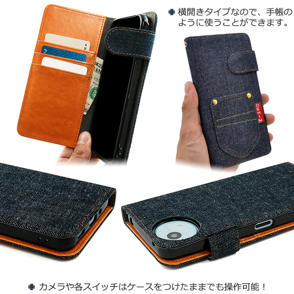 <スマホケース>AQUOS wish4 SH-52E/A402SH/SH-M27用ポケットデニムデザイン手帳型ケース