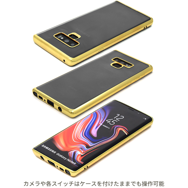 Galaxy Note9 SC-01L/SCV40用のメタリックバンパーソフトクリアケース。