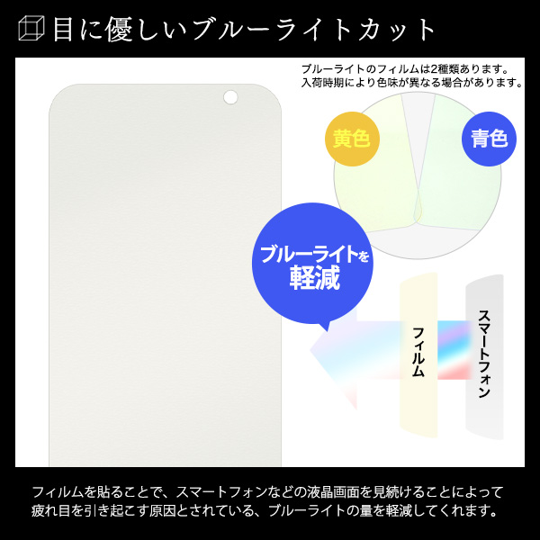 フィルムを貼ることで、スマートフォンなどの液晶画面を見続けることによって、疲れ目を引き起こす原因とされている、ブルーライトの量を軽減してくれます。