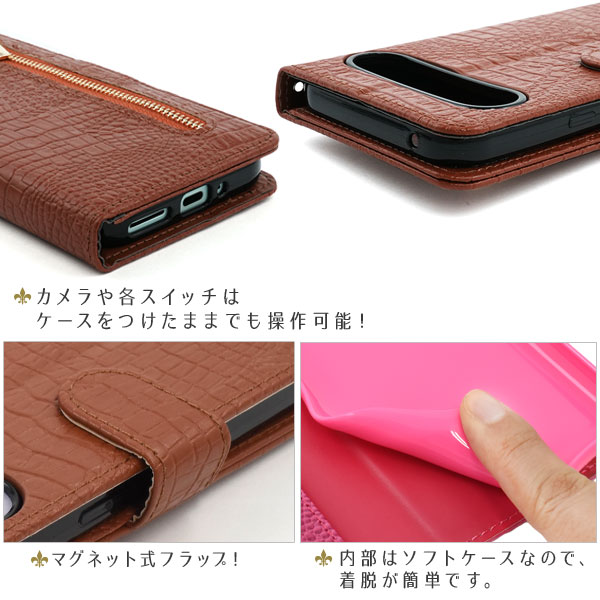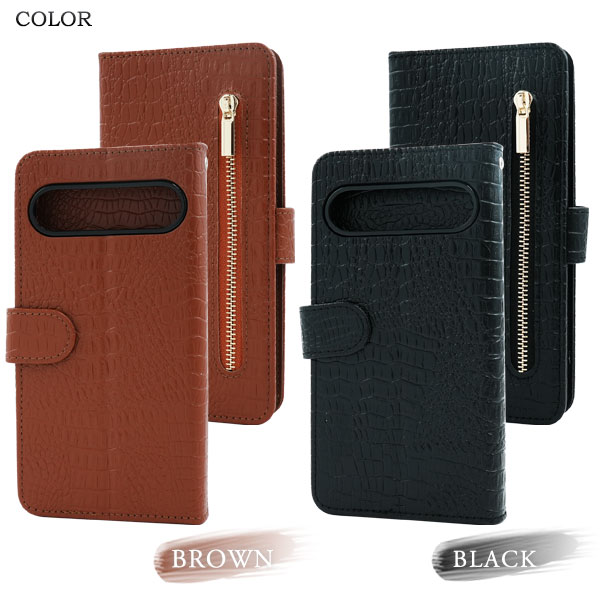 <スマホケース>Google Pixel 9 Pro XL用クロコダイルレザーデザイン手帳型ケース